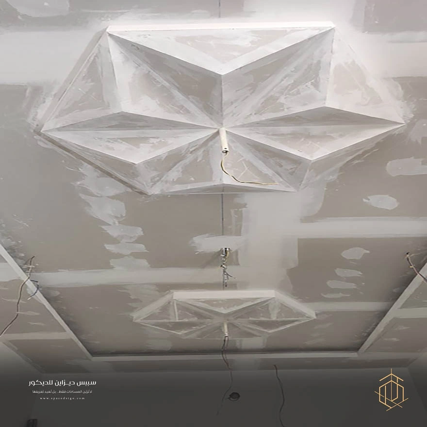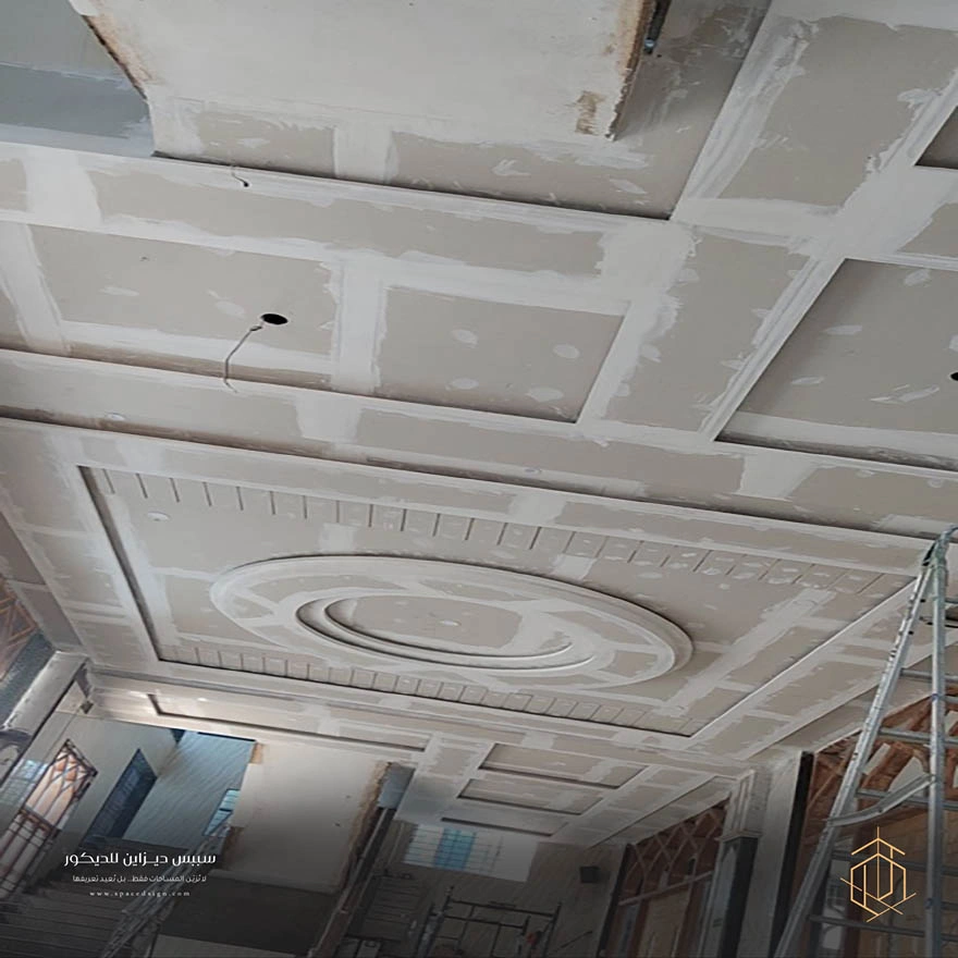 • أسقف جبس بورد للمجالس: تركّز على الفخامة والتناسق، مع تصاميم مركزية أو محيطية تبرز سقف المجلس وتمنحه حضورًا راقيًا.